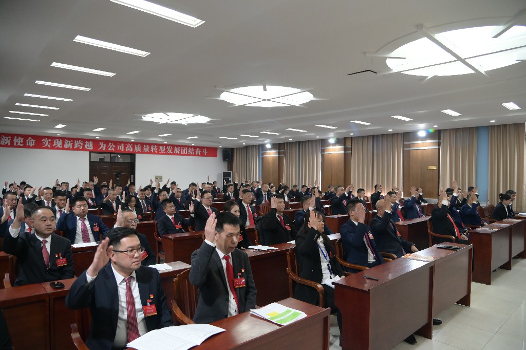 公司党委书记、董事刘刚向大会作报告;公司党委副书记、总经理苏大昂主持会议。大会在庄严的国歌声中拉开帷幕。