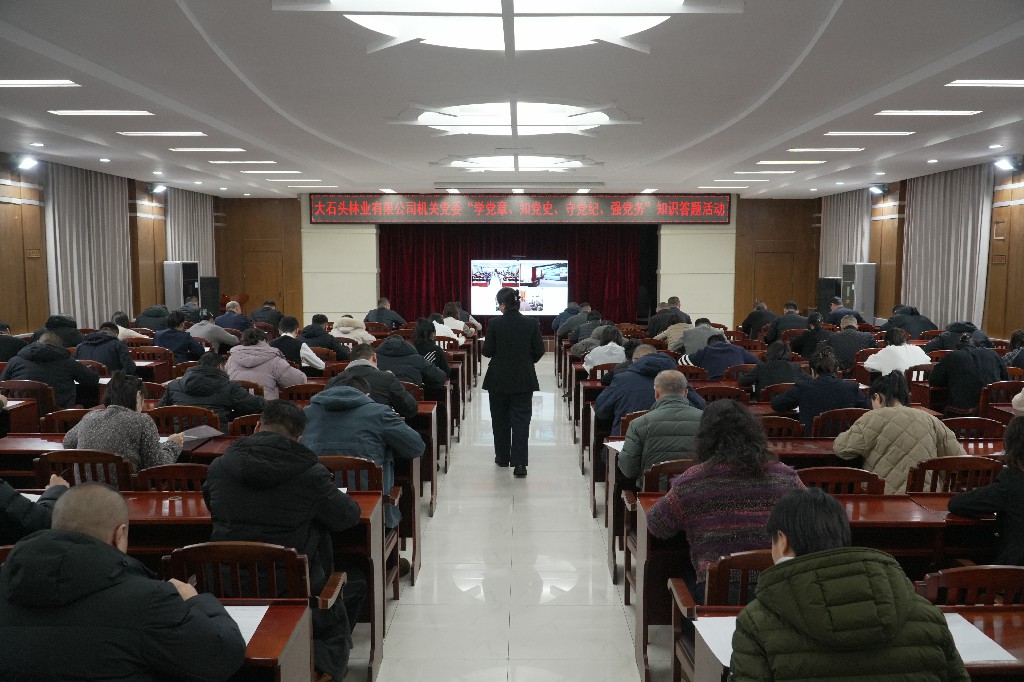 为进一步推动公司机关党员深化党章党规、党史及党务工作知识学习,夯实理论根基,强化党性修养。12月24日,大石头林业有限公司机关党委举办“学党章、知党史、守党纪、强党务”知识答题活动,总部各支部全体党员及入党积极分子共100余人参与其中。