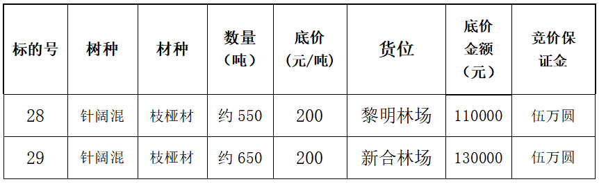 2.最终枝桠材成交数量按实际检斤数量为准。